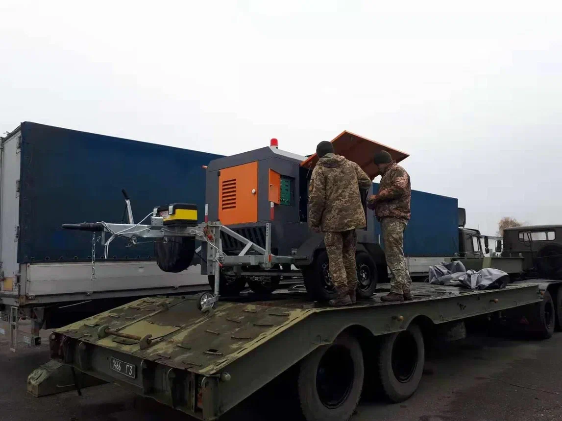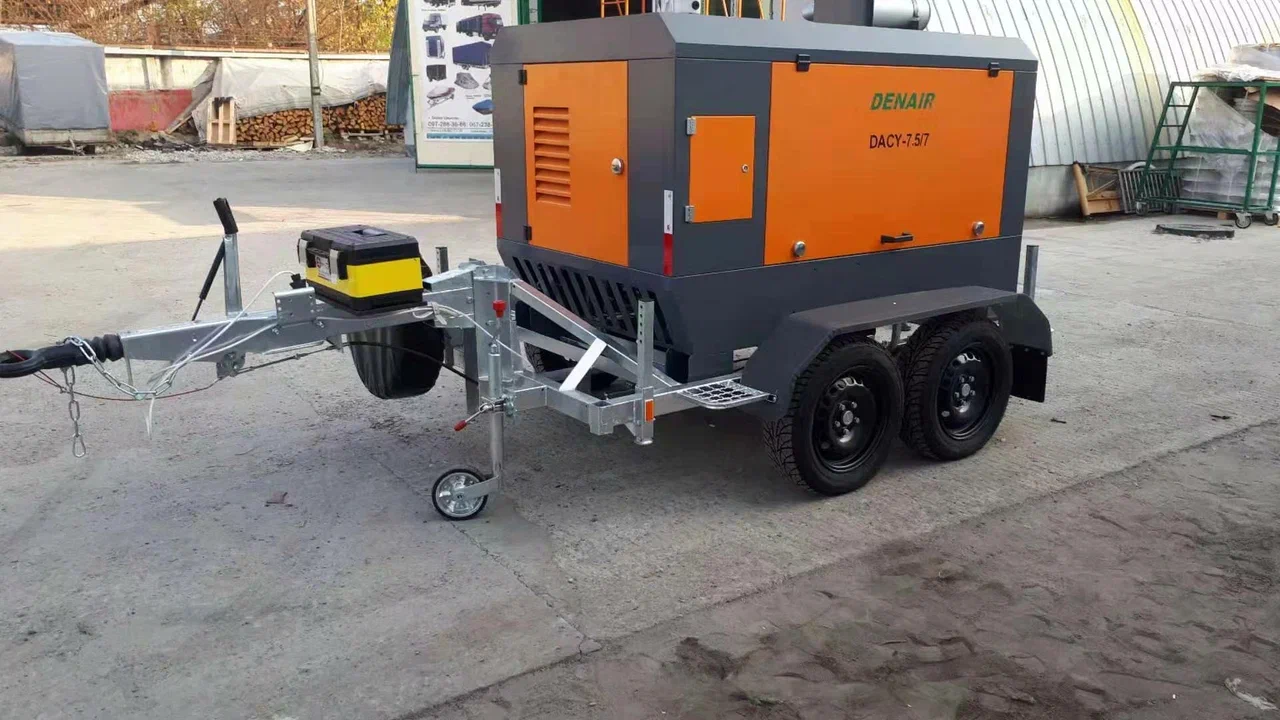 Компрессор с производительностью 7.5 м3/мин. легко передвигаемый между объектами с помощью шасси.